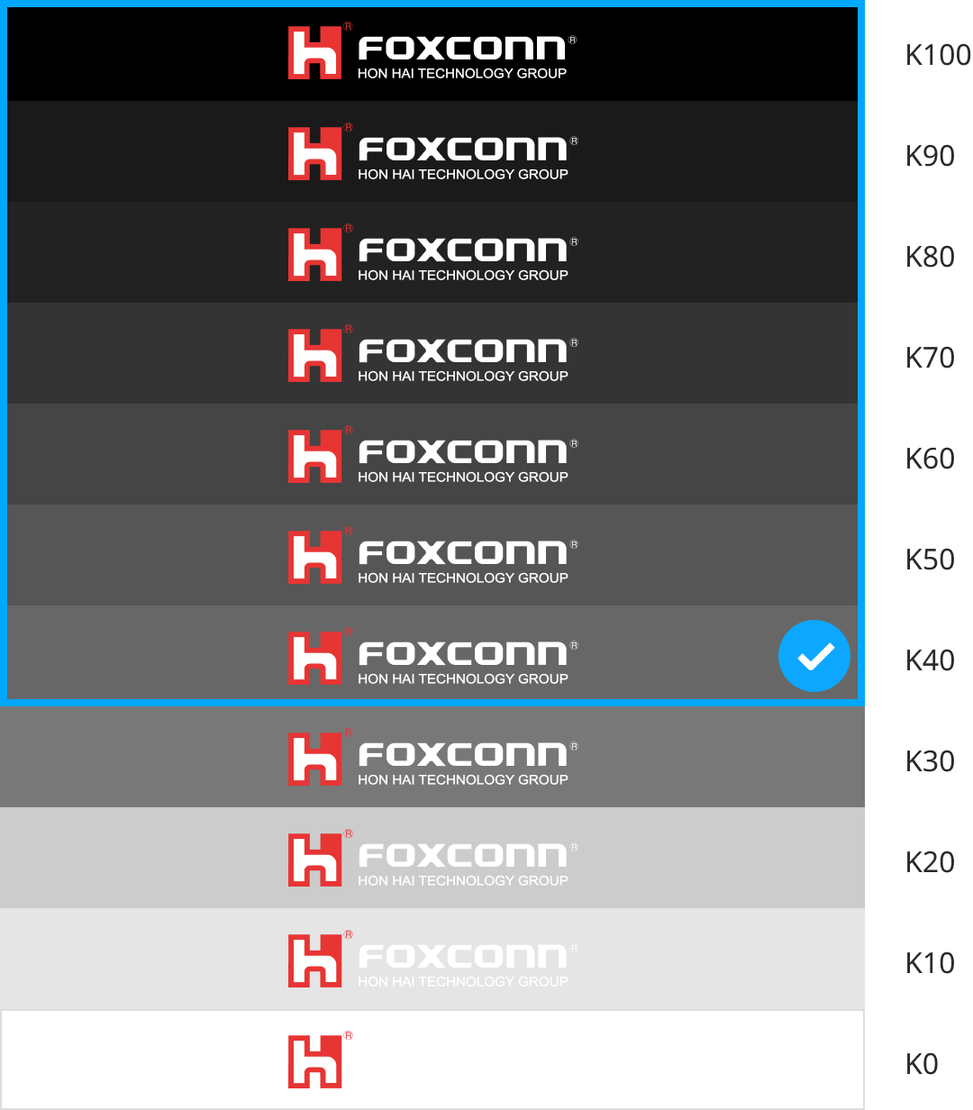 可按照背景之色阶,使用合适的商标组合( 标准色/ 反白色),以保持清晰的商标识别度。